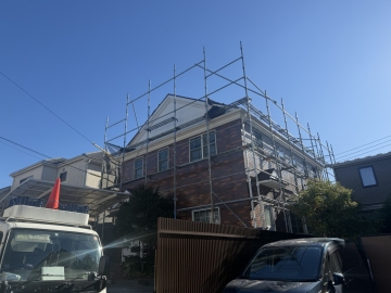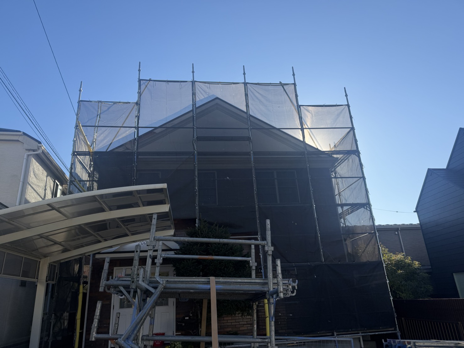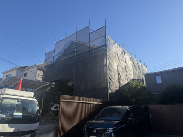 | 【2025/12/15】工事7日目 本日は、外壁塗装前の準備として養生作業をおこないました。 |