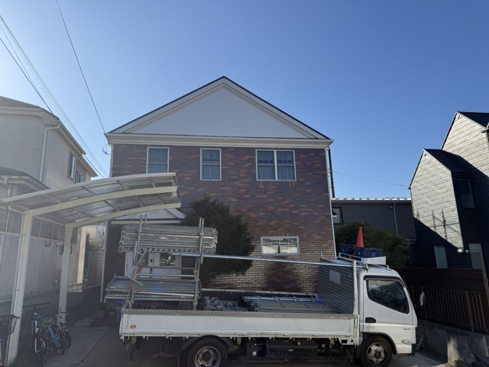 | {2025/12/16】工事8日目 本日より、外壁の塗装作業にはいりました。 |