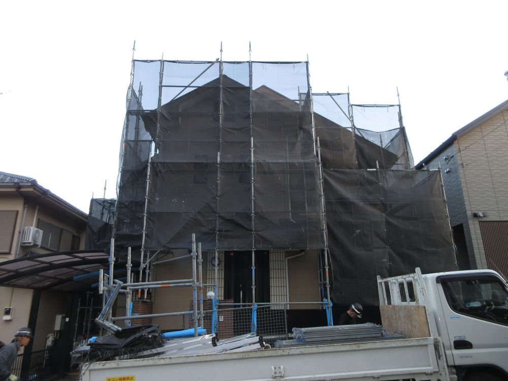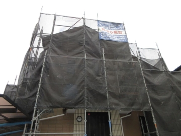 | [2025/12/12]工事1日目 新たな工事が始まり足場組を行いました。こちらのお宅は、 以前当社でお世話になったリピーター様で今回二度目の塗替え工事になります。 |