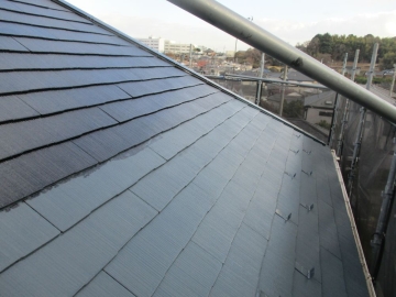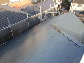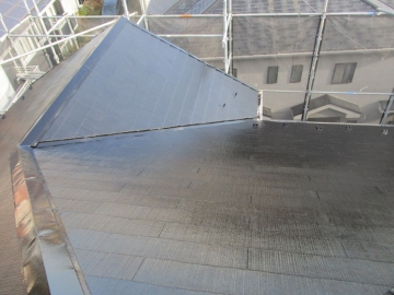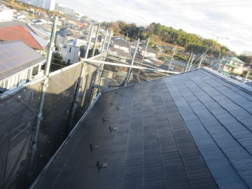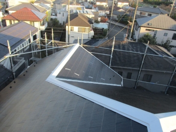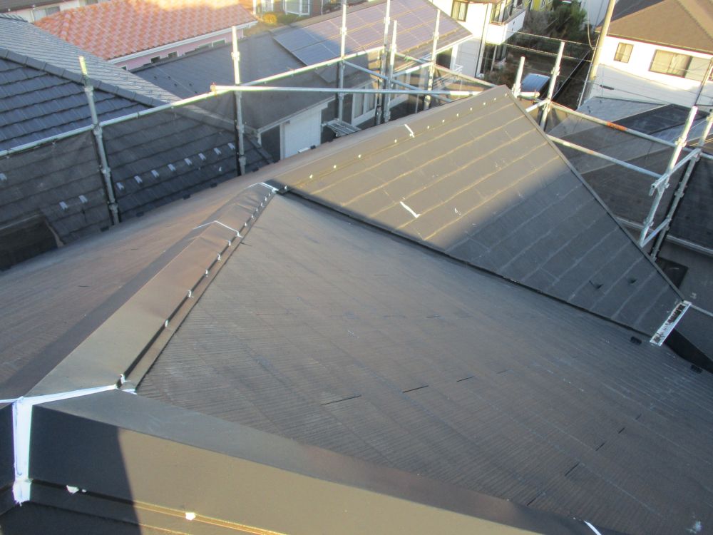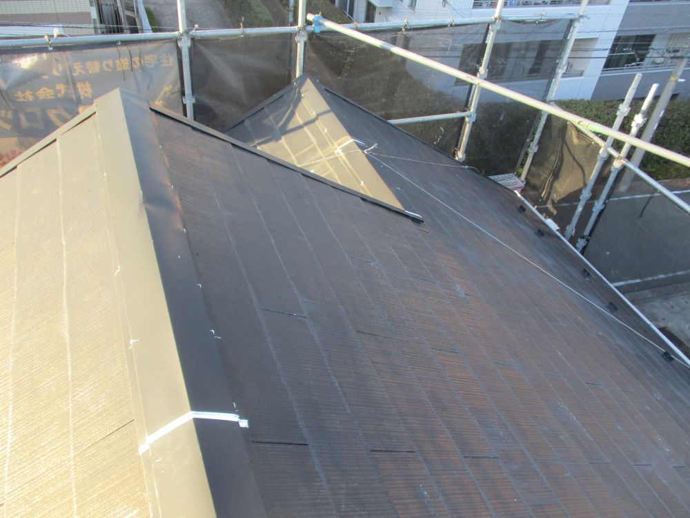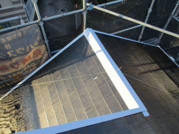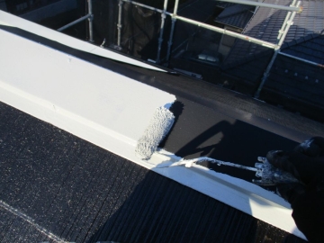 | [2025/12/17]工事4日目 屋根面の下塗り、棟板金の錆止め、外壁面にUVクリヤー塗り1回目を行いました。 | ||||||||||||||||||||||||||||||||||||