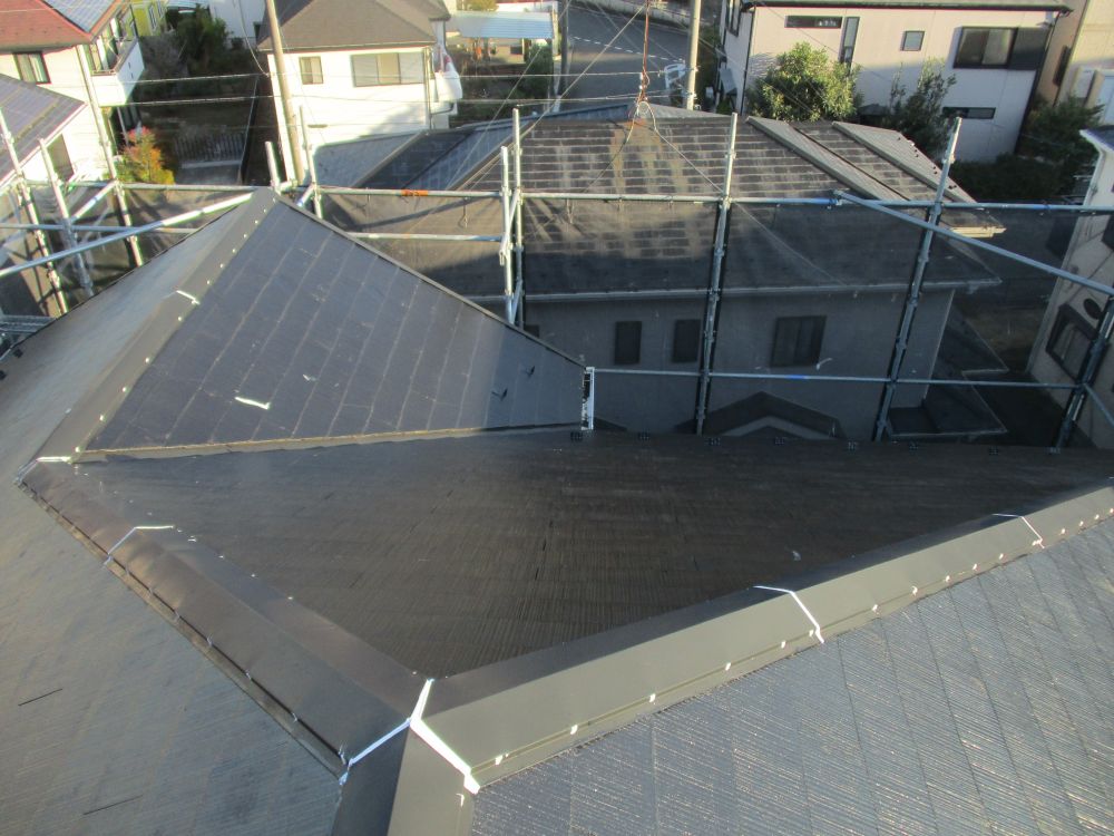 | [2025/12/16]工事3日目 開口部の養生、屋根のクラック補修、棟板金の補修などを行いました。 | ||||||||||||||||||||||||||||||||||||