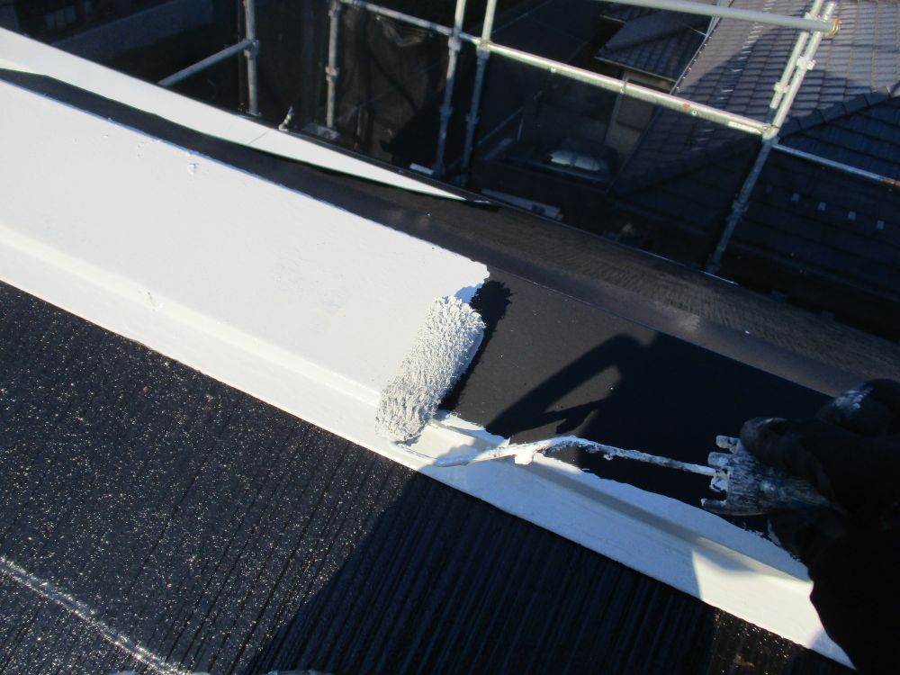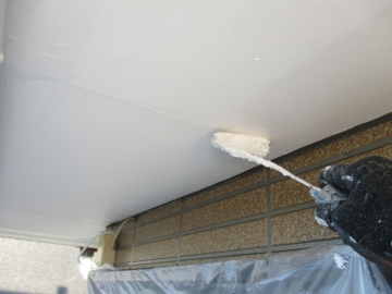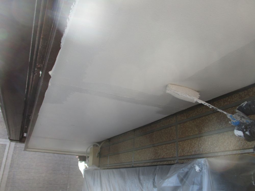 | [2025/12/18]工事5日目 軒天面の下塗り・上塗り、屋根面の中塗りなどを行いました。 | ||||||||||||||||||||||||||||||||||||