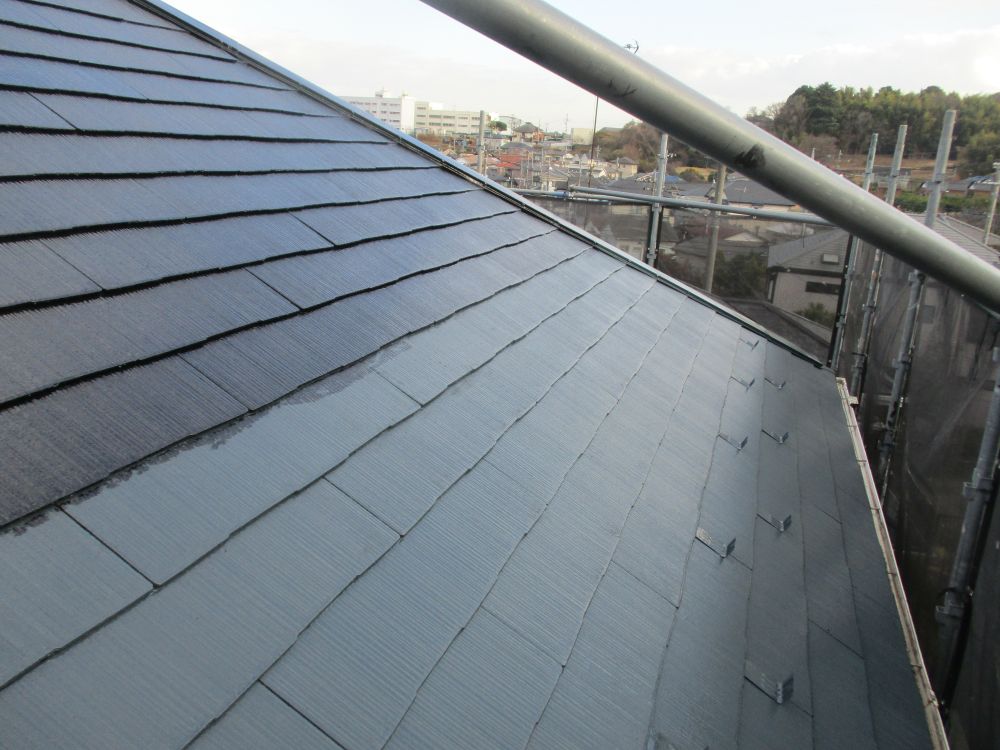 | [2025/12/27]工事10日目 屋根の縁切り、縦樋の上塗り、水切りの上塗り後、 建物全体の見直し最終検査を行い残すは足場解体のみとなりました。 |