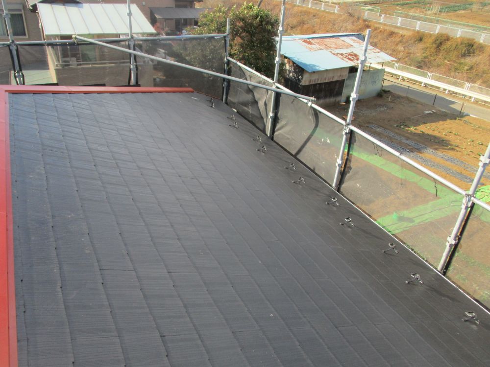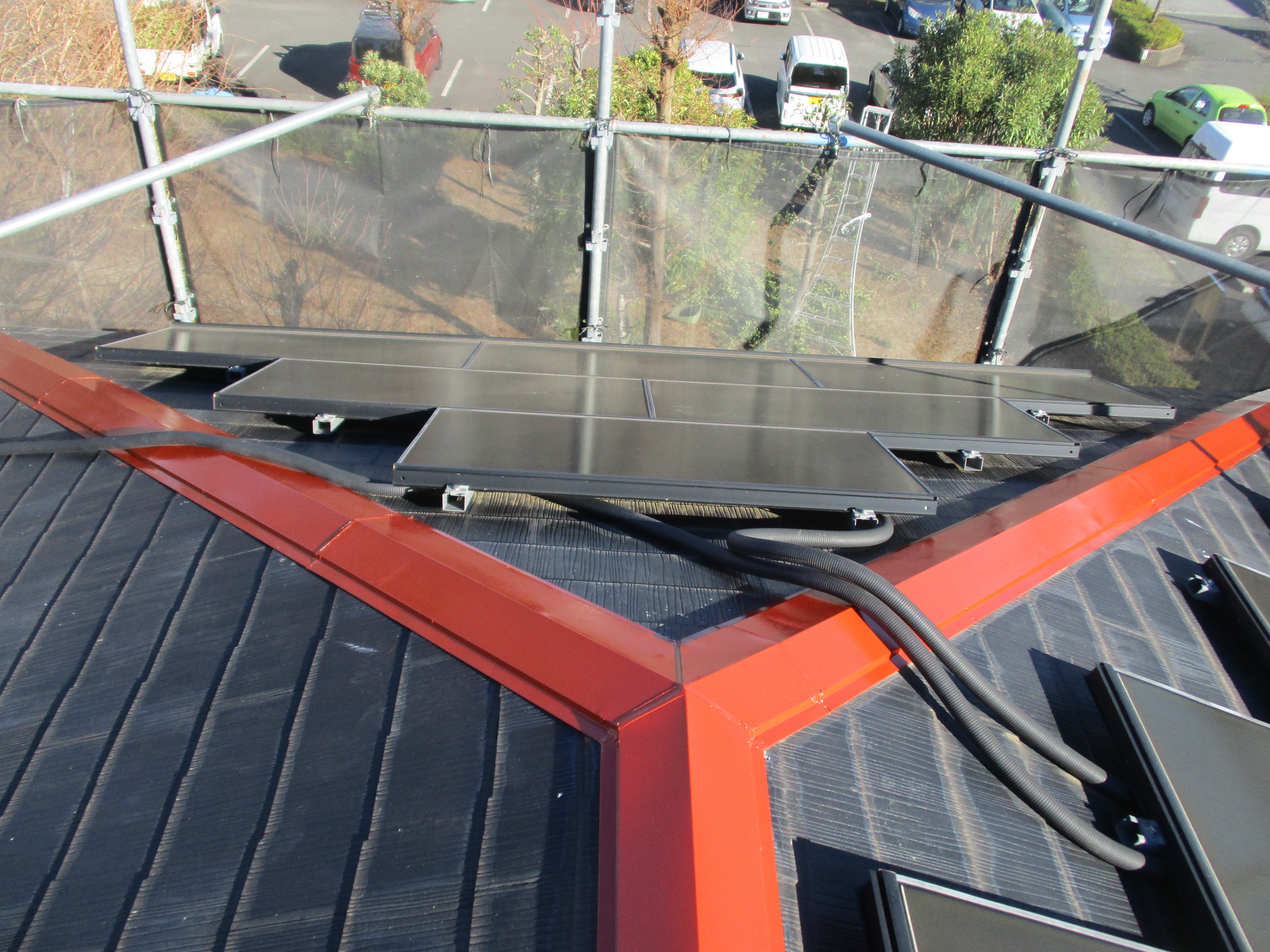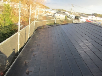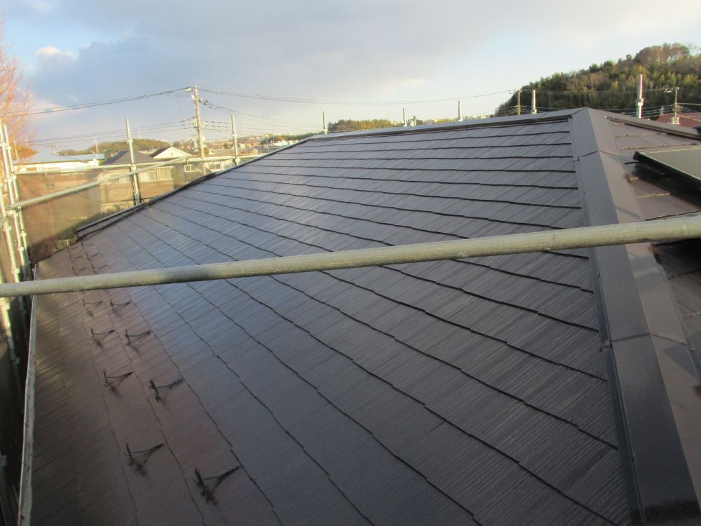 | [2026/01/29]工事9日目 屋根の縁切り、水切りの上塗り、タッチアップ及び掃除後 完了前検査を行い、残すは足場解体のみとなりました。 |