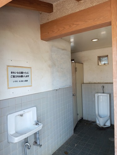 公園内のトイレ塗装の、見積り依頼が有り、現調に来ています。。